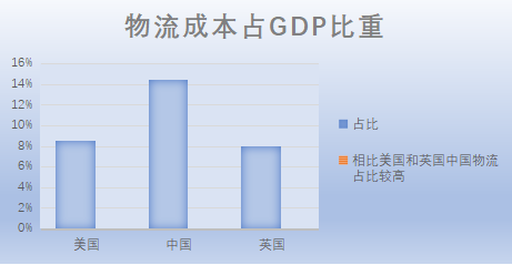 研究院报告显示,我国仓储面积存量约10亿平米,但现代化仓储起步较晚,截至2022年,经营性高标仓面积仅有7198万平方米。从结构上看,低效的传统仓占据了90%的货运吞吐量,高标仓比重只占到了5-10%左右,这也是我国物流成本居高不下的原因。相比美国和英国,中国物流成本偏高(2021年数据来自某银行的研究报告)